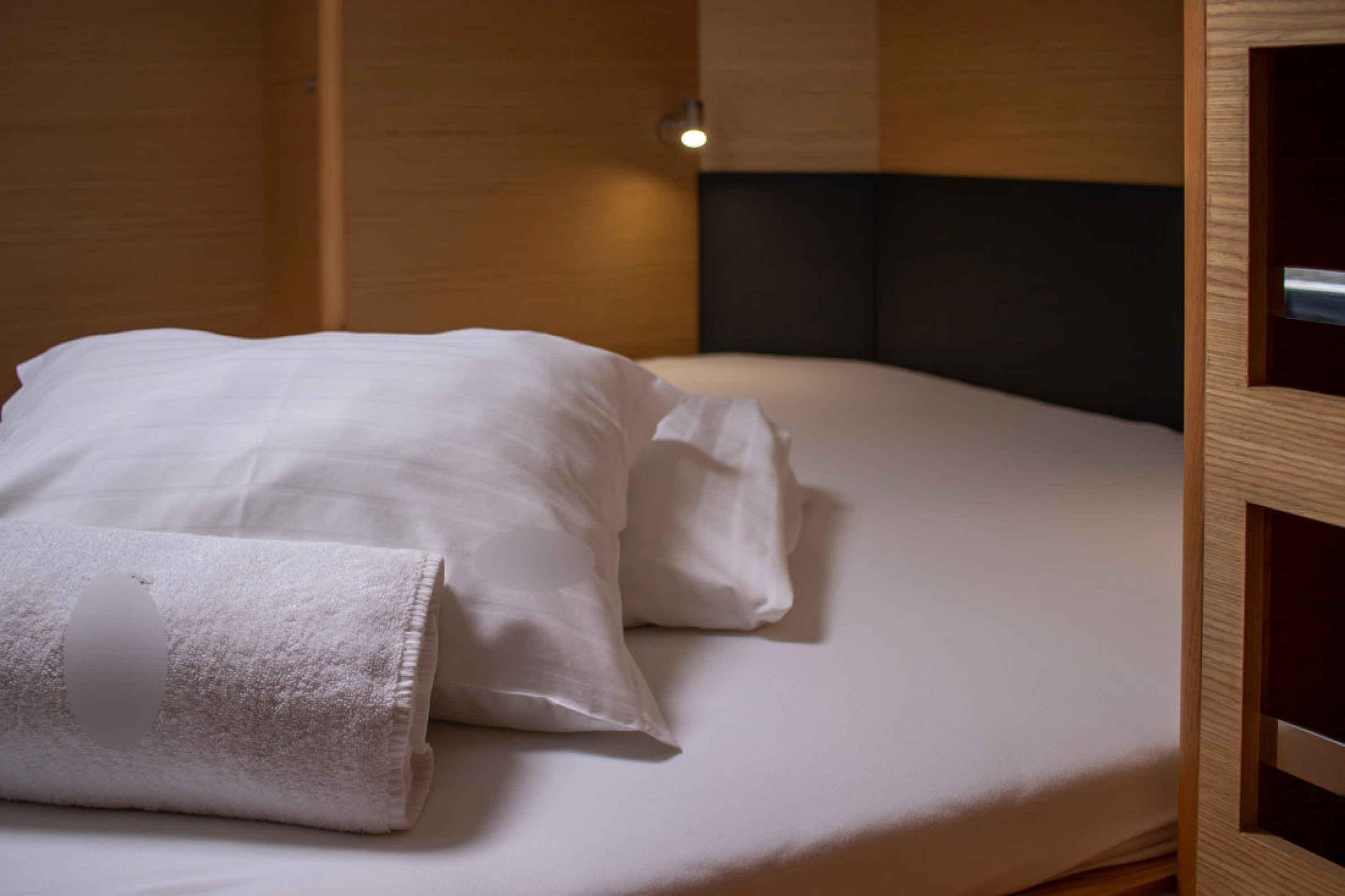 includes: 1 bed linen (per person on crew list), 1 towels (per person on crew list), 2 kitchen towels, 2 cooking gas, 1 dish liquid + 1 sponge, 1 small soap + 1 wc paper/toilet), outboard engine, WI-FI (5GB/Day) welcome pack (1 bottle Prosecco, coffee capsules, extra virgin olive oil 0,1L), snorkeling mask final cleaning 1 SUP