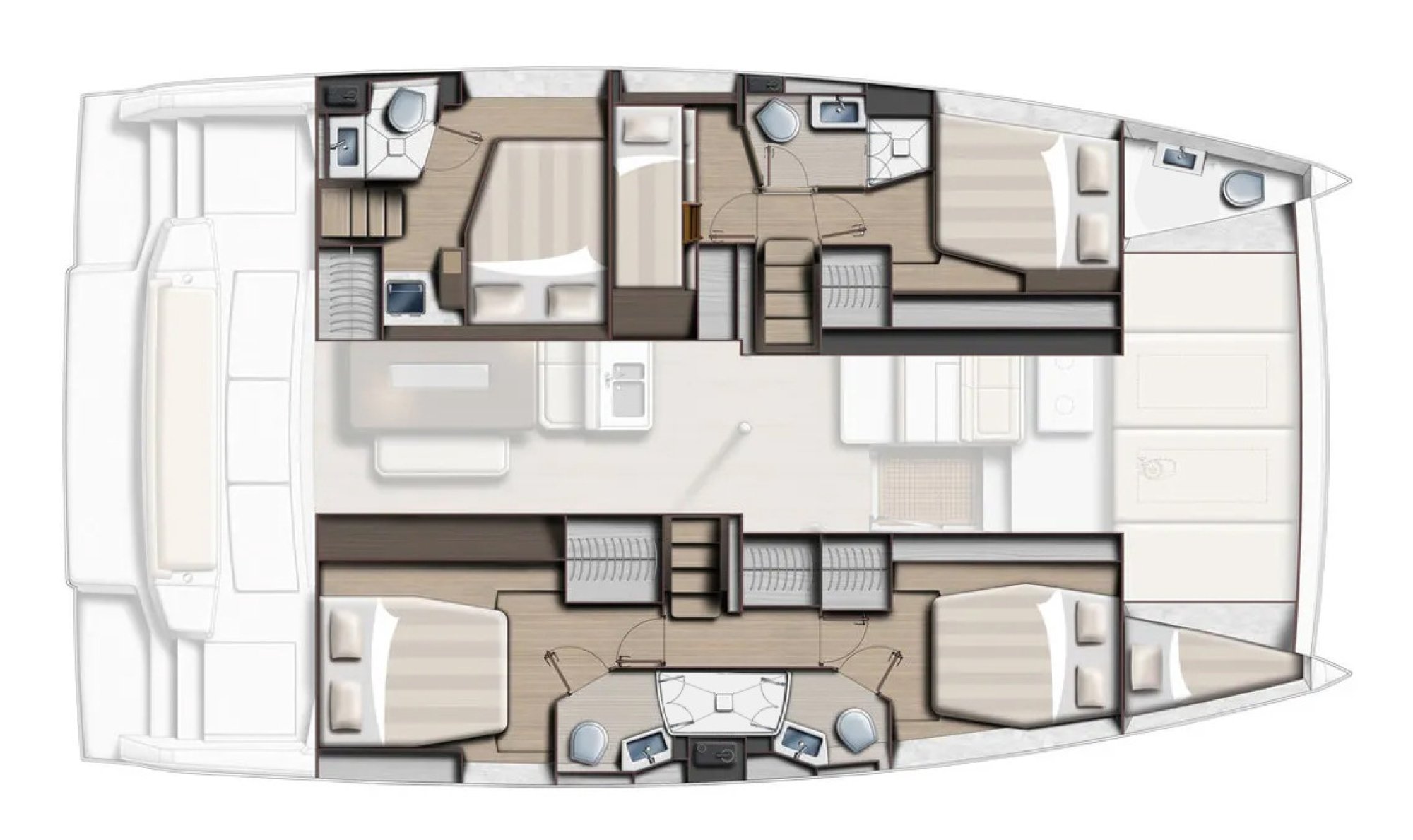 - Spacious cabins ideal for families and charter guests
