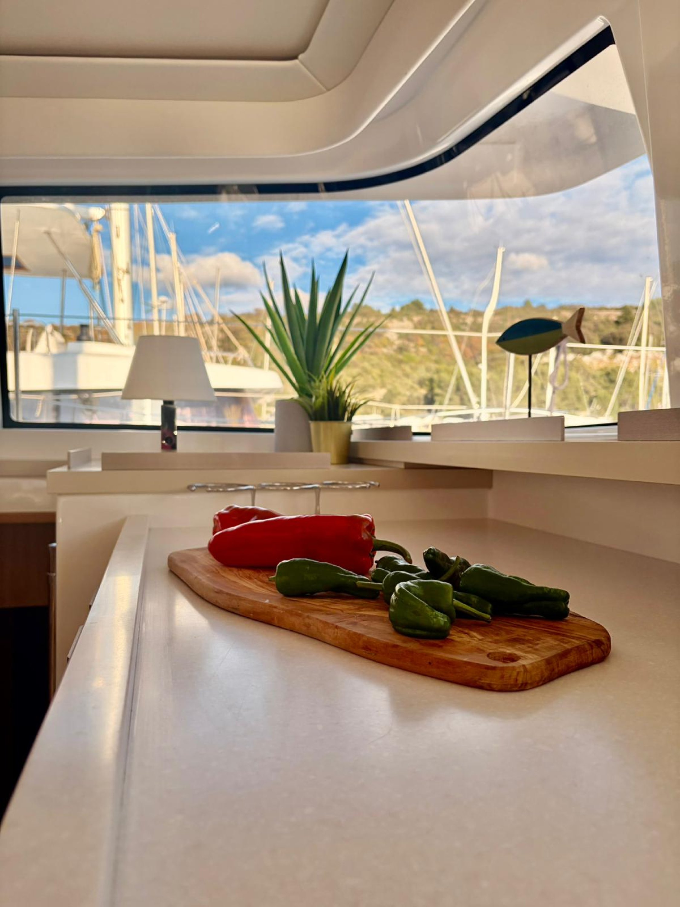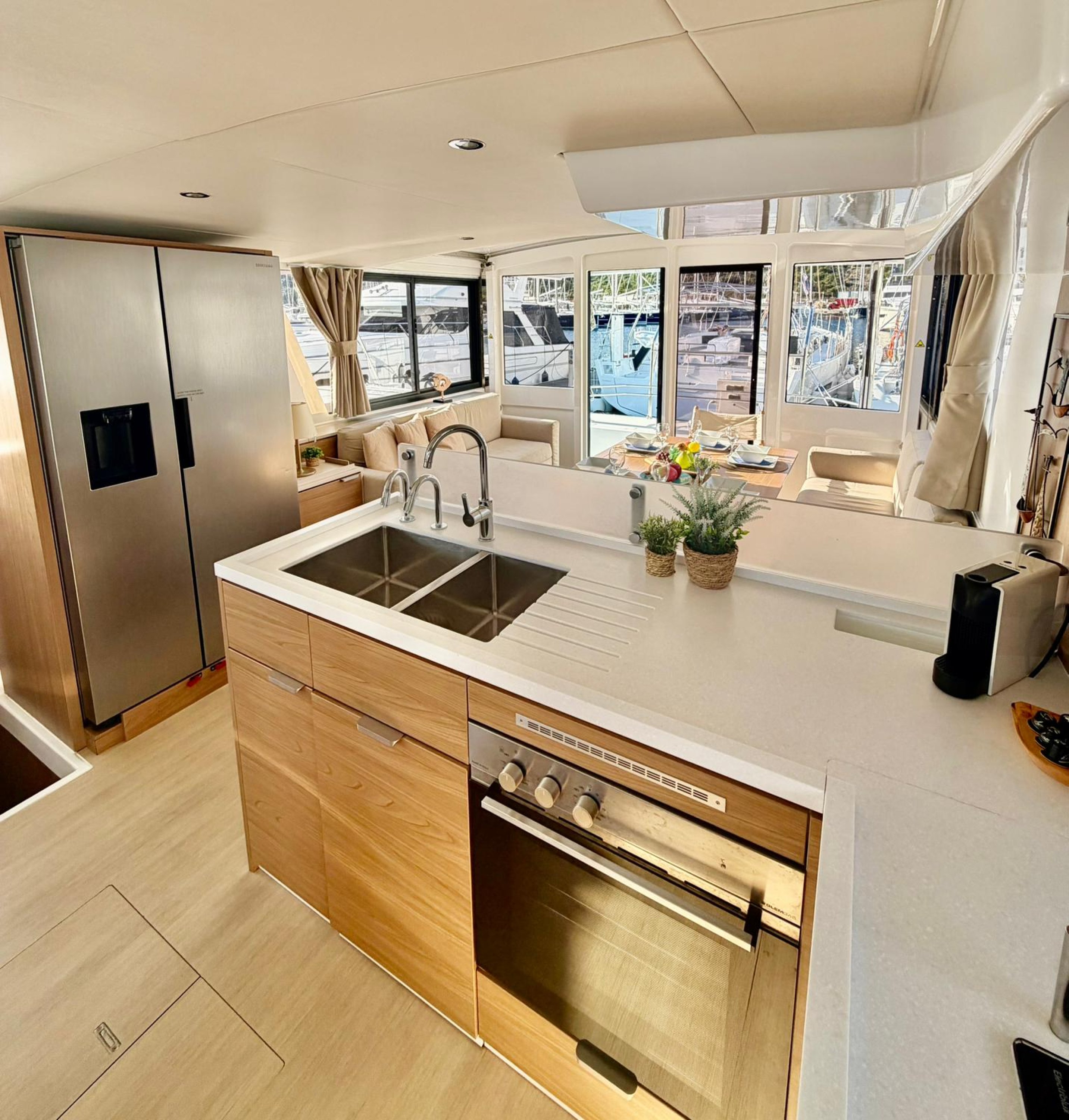 One of the defining features of the Bali 4.6 is its open-plan layout. The solid aft door allows the cockpit and saloon to merge into one large, bright living area, creating a seamless indoor–outdoor experience rarely found on catamarans of this size.