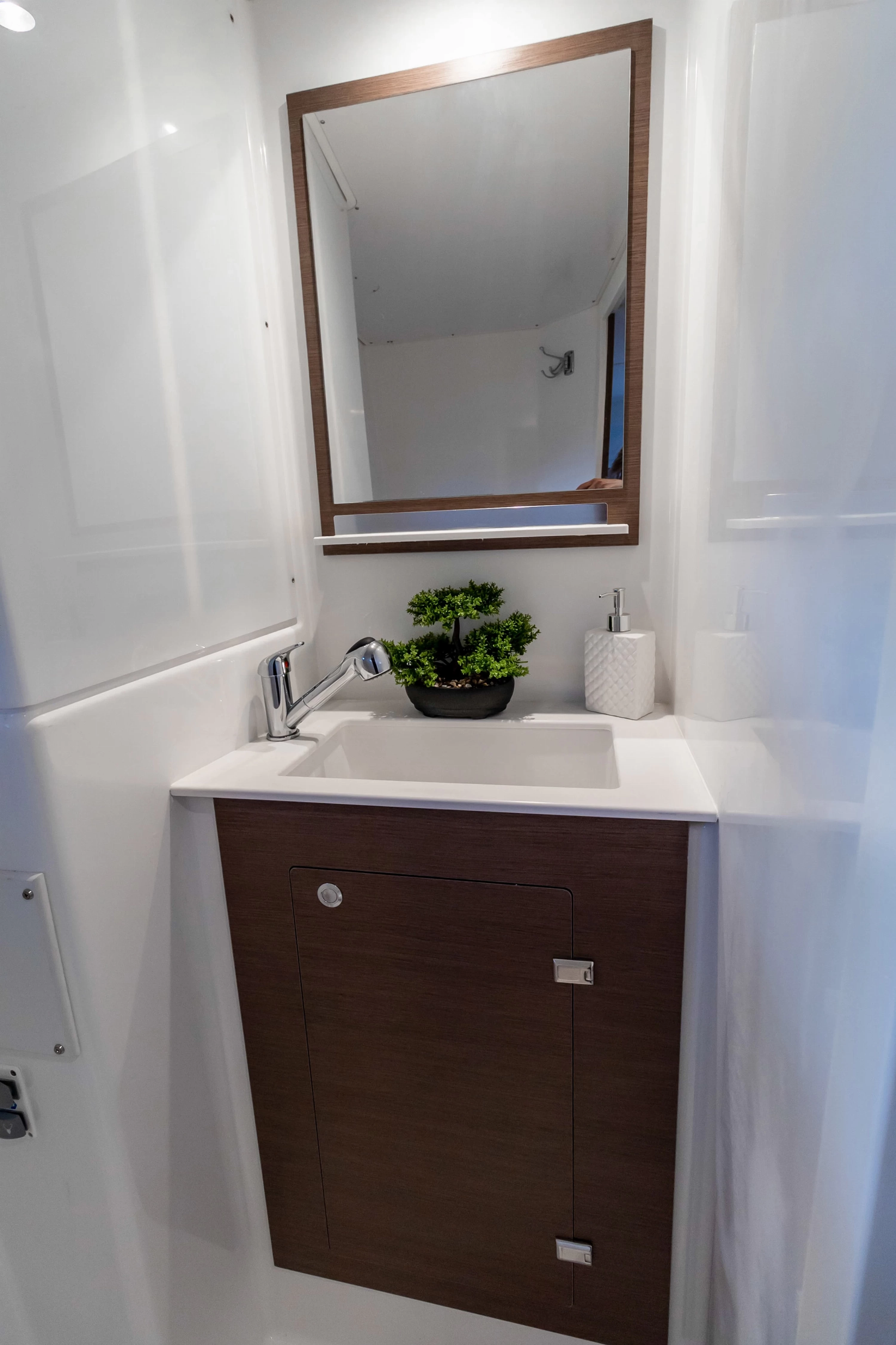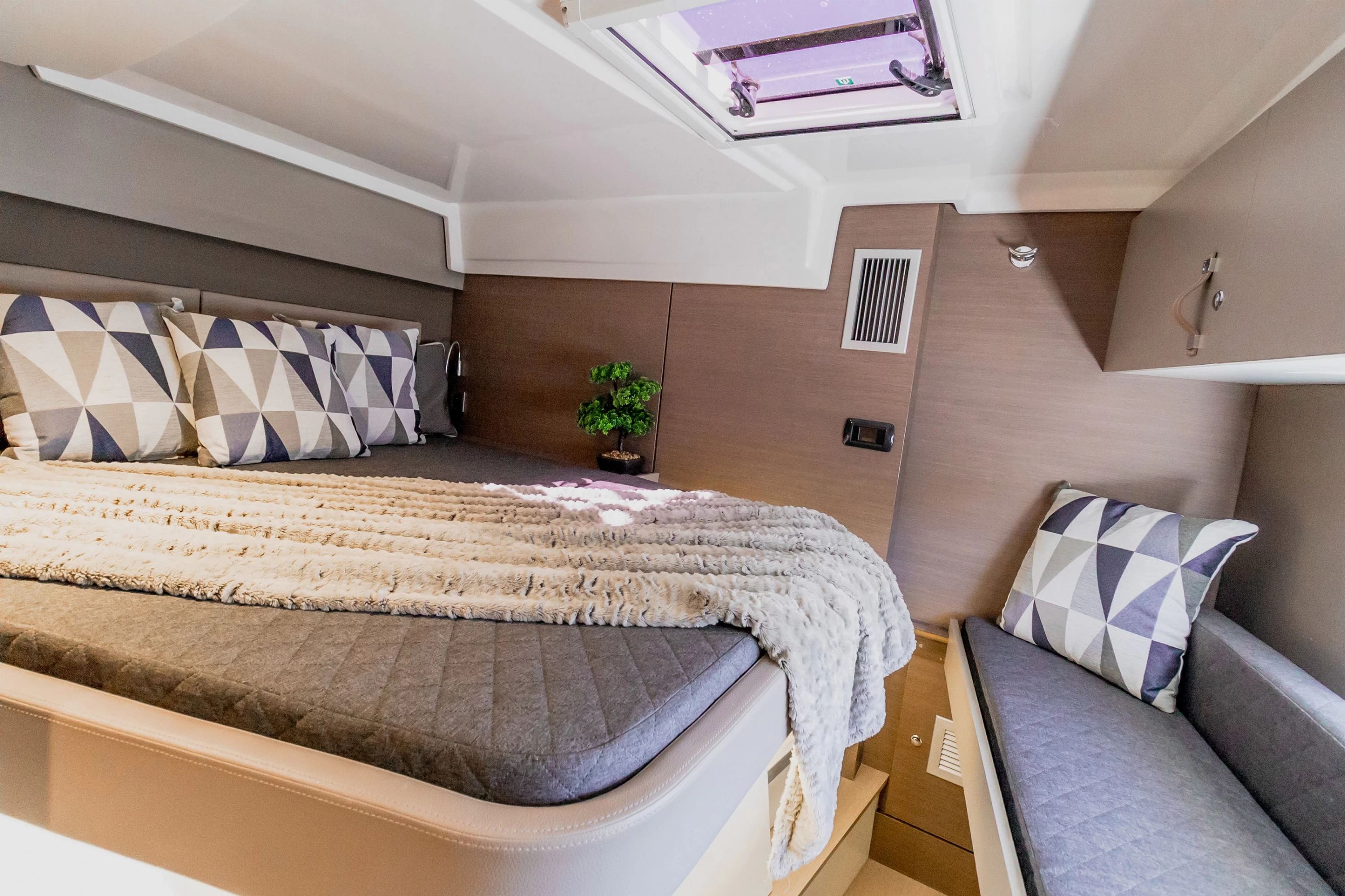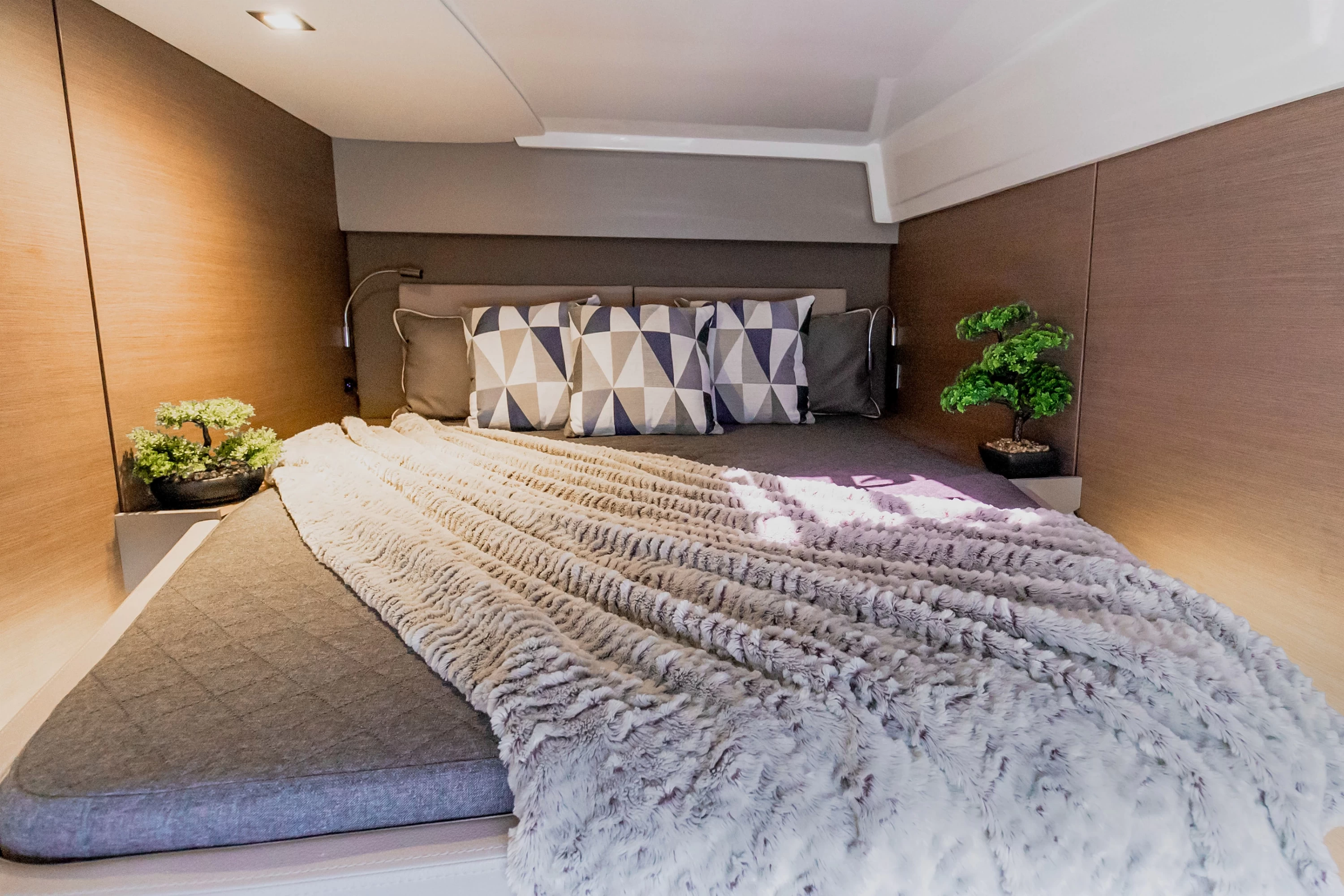 Leila can accommodate up to 8 people in 4 double cabins. Pillows and blankets are included in the price. It is equipped with a 2x250hp engine. Power catamaran Leila offers 4 toilets with a shower. Boat equipment features generator, BBQ, bimini and outside GPS plotter. It also boasts an air conditioning, audio system, outside speakers, flybridge and inside speakers. The fully-equipped galley includes a freezer, oven, cooker, sink and kitchen utensils.