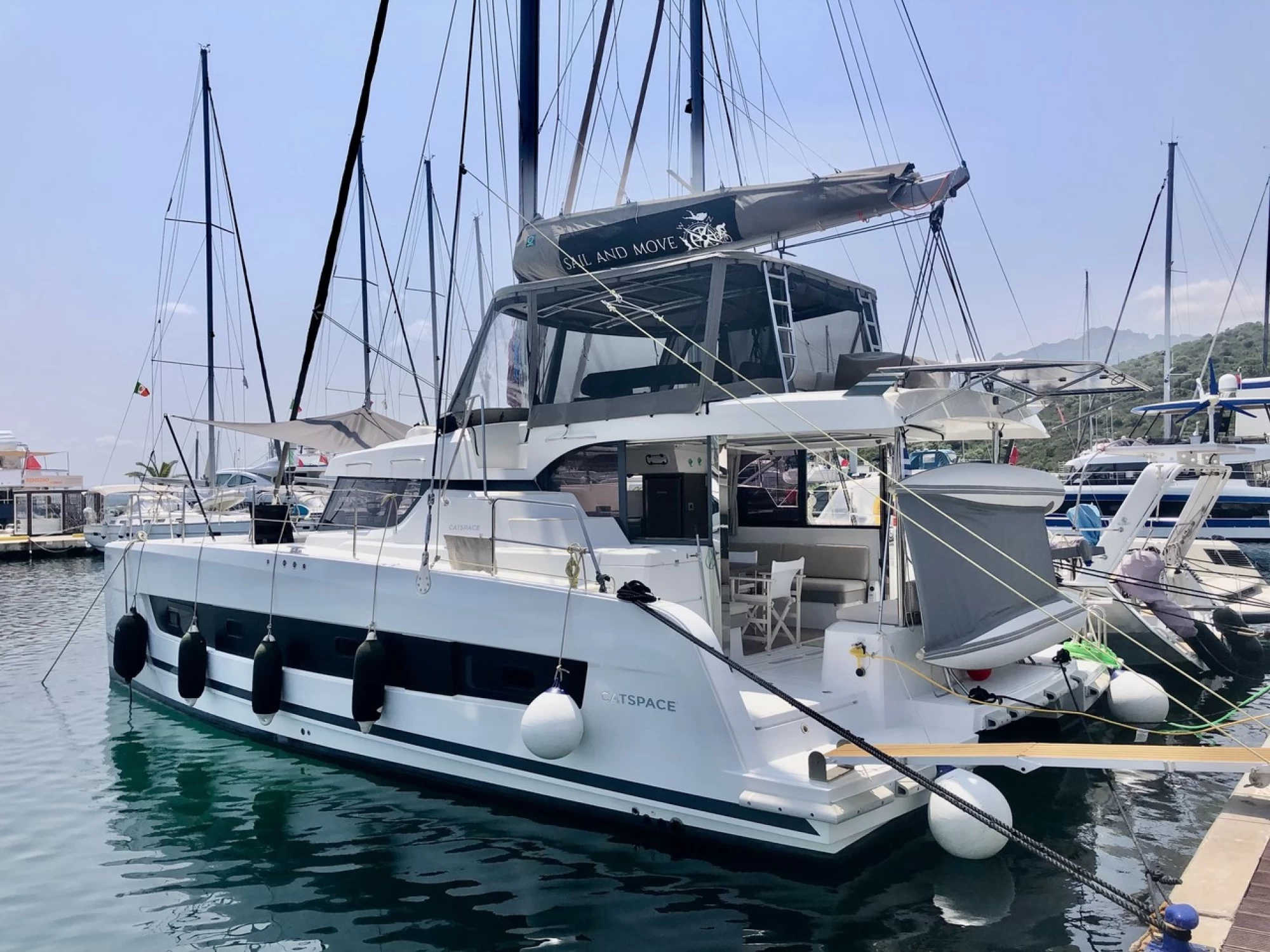 4-cabin catamaran Bali Catspace - Nammu was built in 2021 and it is docked in Marina Kremik, Croatia. Nammu can accommodate up to 10 people in 4 double cabins and a saloon with 2 extra beds. Pillows and