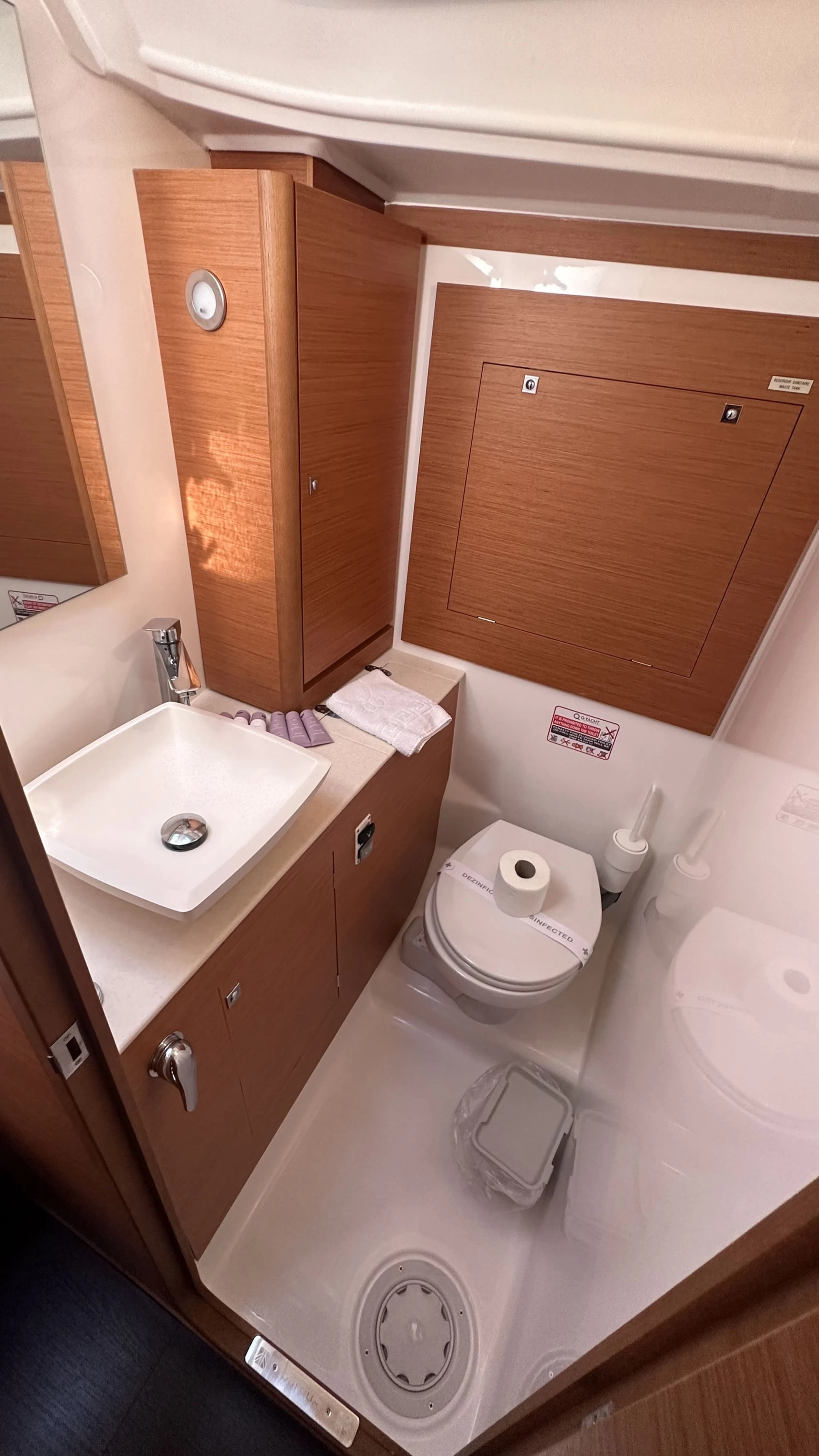 Andela can accommodate up to 8 people in 3 double cabins and a saloon with 2 extra beds. Pillows and blankets are included in the price. Sailing yacht Andela offers 2 toilets with a shower. Boat equipment features rolling mainsail, BBQ, bimini and bow thruster. It also boasts heating, air conditioning, audio system, outside speakers and stand up paddle. The fully-equipped galley includes an oven, cooker, sink and kitchen utensils.