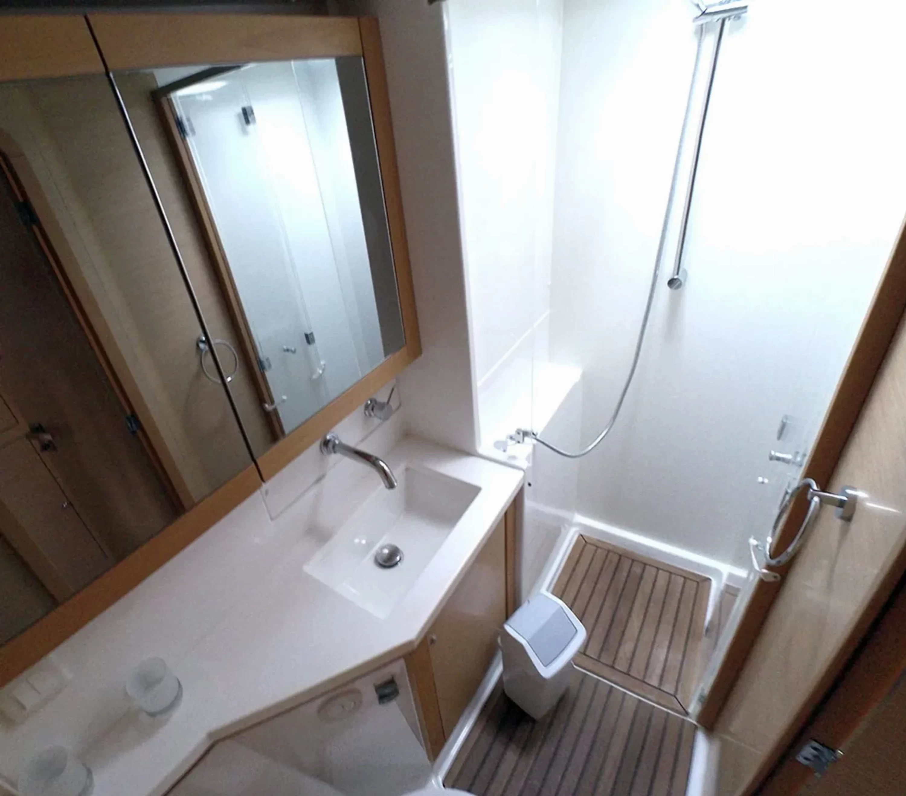 Pillows and blankets are included in the price. Catamaran Red Twin 2 offers 4 toilets with a shower. Boat equipment features classic mainsail, electric winches, radar, generator, bimini and outside GPS plotter. It also boasts a heating, air conditioning, audio system, outside speakers and flybridge. The fully-equipped galley includes an ice maker, freezer, coffee machine, oven and cooker. This catamaran is operated by the charter company Q-yacht.